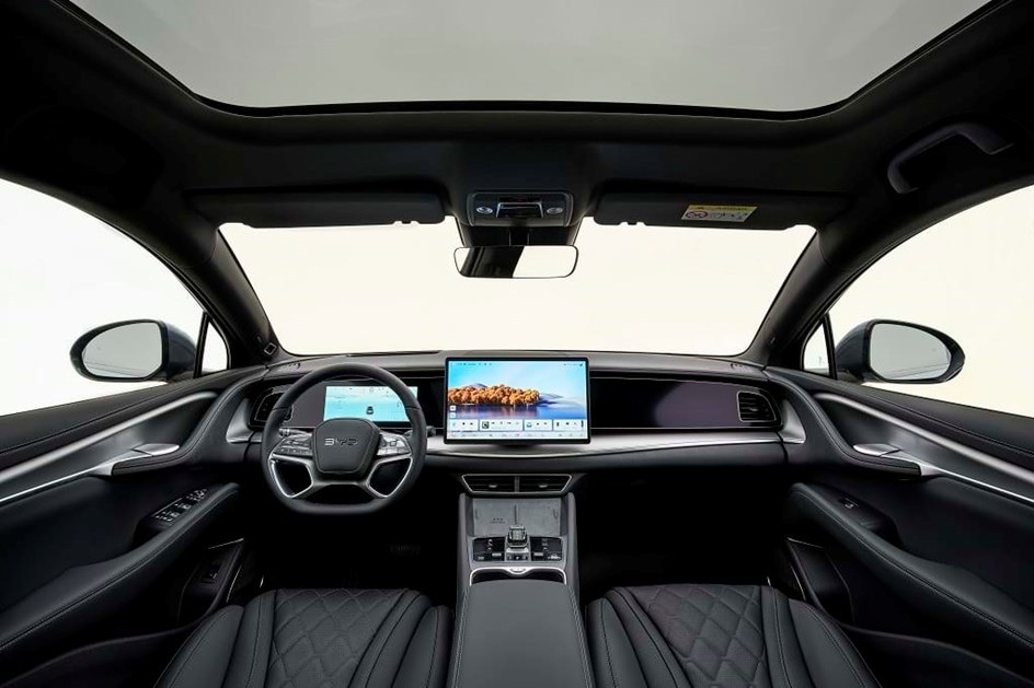 Já o BYD Sealion 7, inspirado na linguagem Ocean Aesthetics, aposta em formas fluidas e um perfil desportivo, transmitindo dinamismo mesmo parado. A frente larga e os detalhes cromados conferem-lhe um aspeto premium.