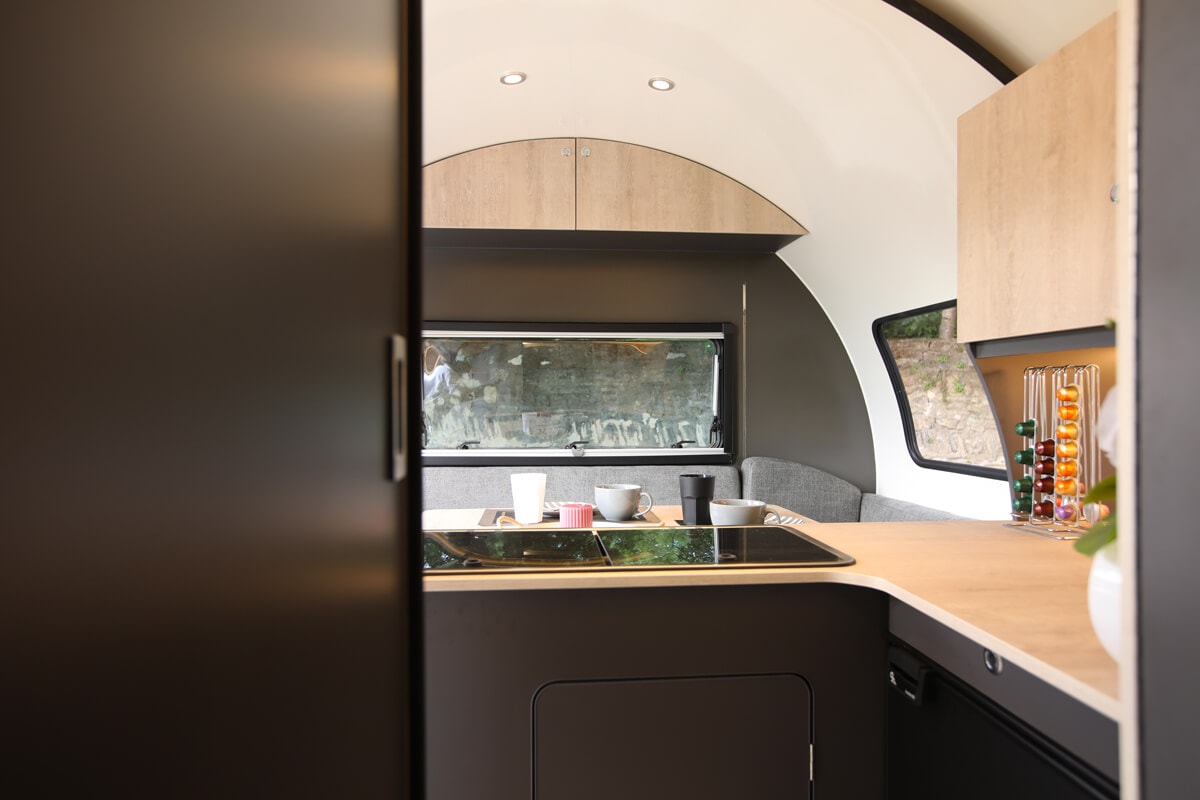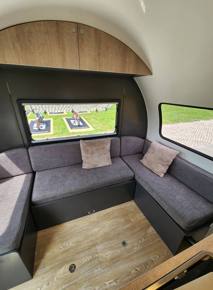Em viagem, a caravana mede apenas 1.95 m de largura (ideal para garagens!), mas no campismo, com um simples toque de um botão, os módulos laterais deslizam como um acordeão, para triplicar a área útil, chegando aos 12 m², com sala, cozinha, quarto e casa de banho!