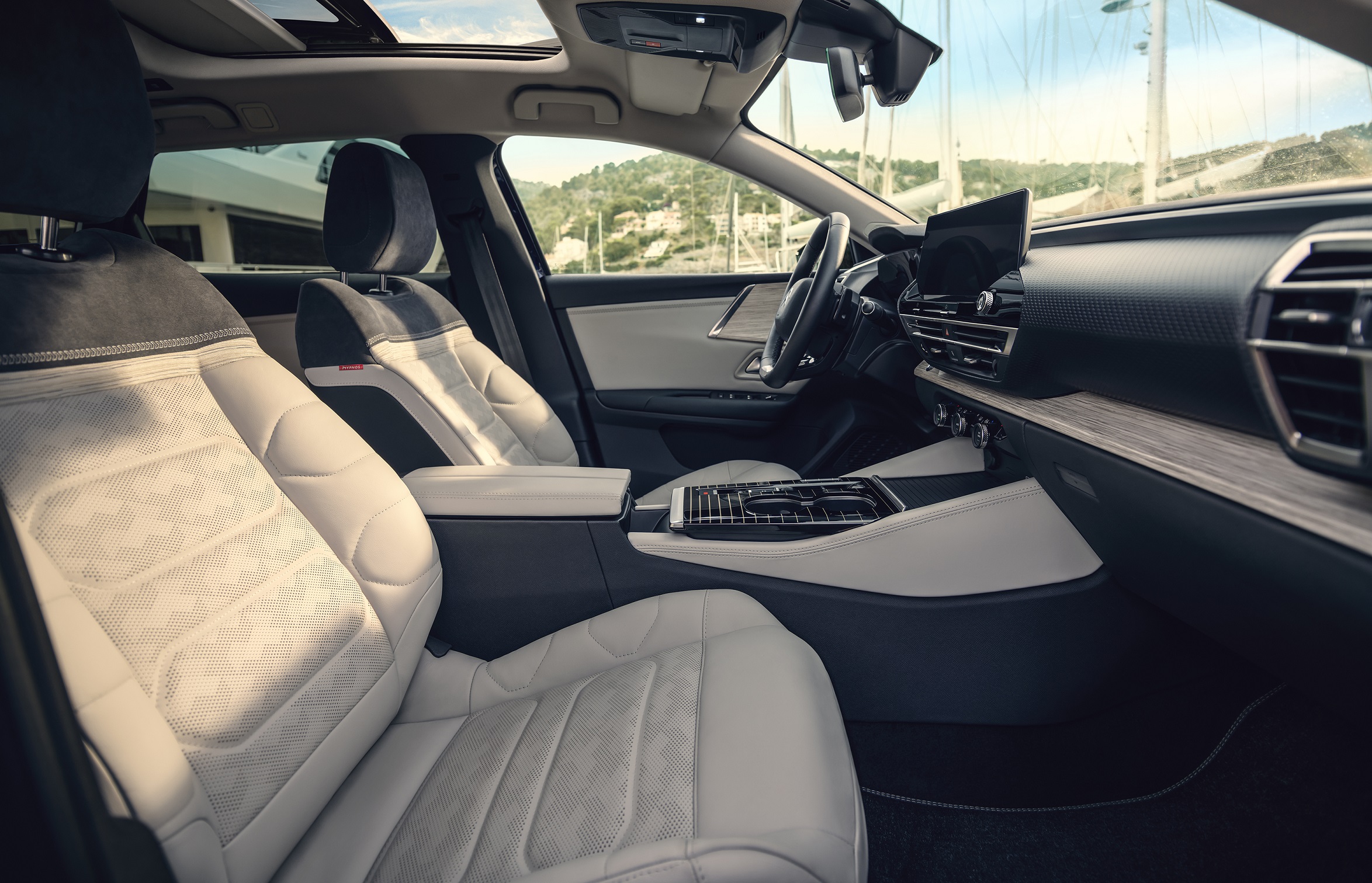 A nível de equipamento, contribuem para essa atmosfera tranquila elementos como o sistema de som de alta-fidelidade, o teto panorâmico em vidro e os bancos dianteiros aquecidos, ventilados e com função de massagem.