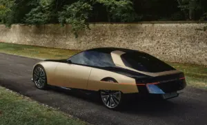 As jantes traseiras de 22 polegadas, parcialmente cobertas, remetem para as espátulas do carro dos anos 70, e o pilar C e o ecrã traseiro envolvente também seguem as sugestões de uma máquina que parece ter vindo de outro planeta quando foi apresentada no Salão Automóvel de Genebra de 1970.