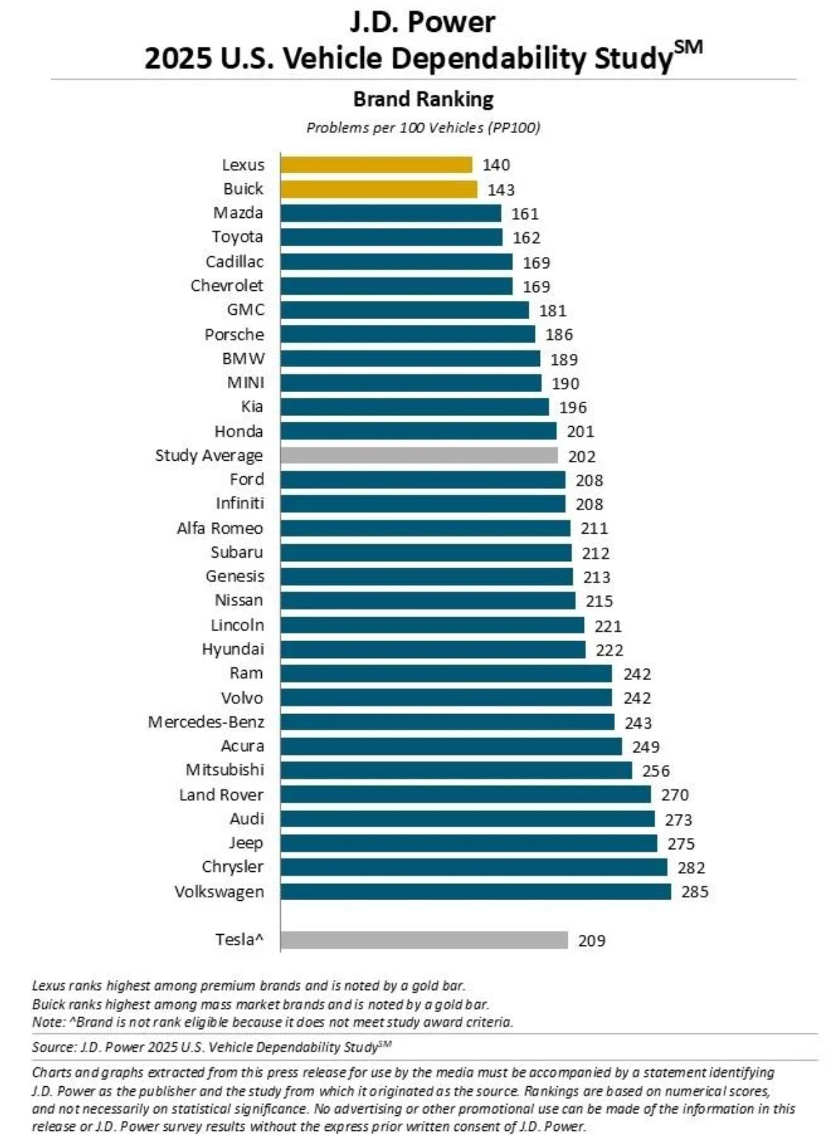 A J.D. Power divulgou os resultados do seu 2025 Vehicle Dependability Study, que analisa problemas em veículos de marca nos primeiros três anos de posse, e a Lexus voltou a destacar-se como a marca mais fiável pelo terceiro ano seguido. Com apenas 140 problemas por cada 100 viaturas, a marca Lexus ficou bem abaixo da média do setor, que registou 202 problemas por 100 veículos – o pior valor desde 2009.