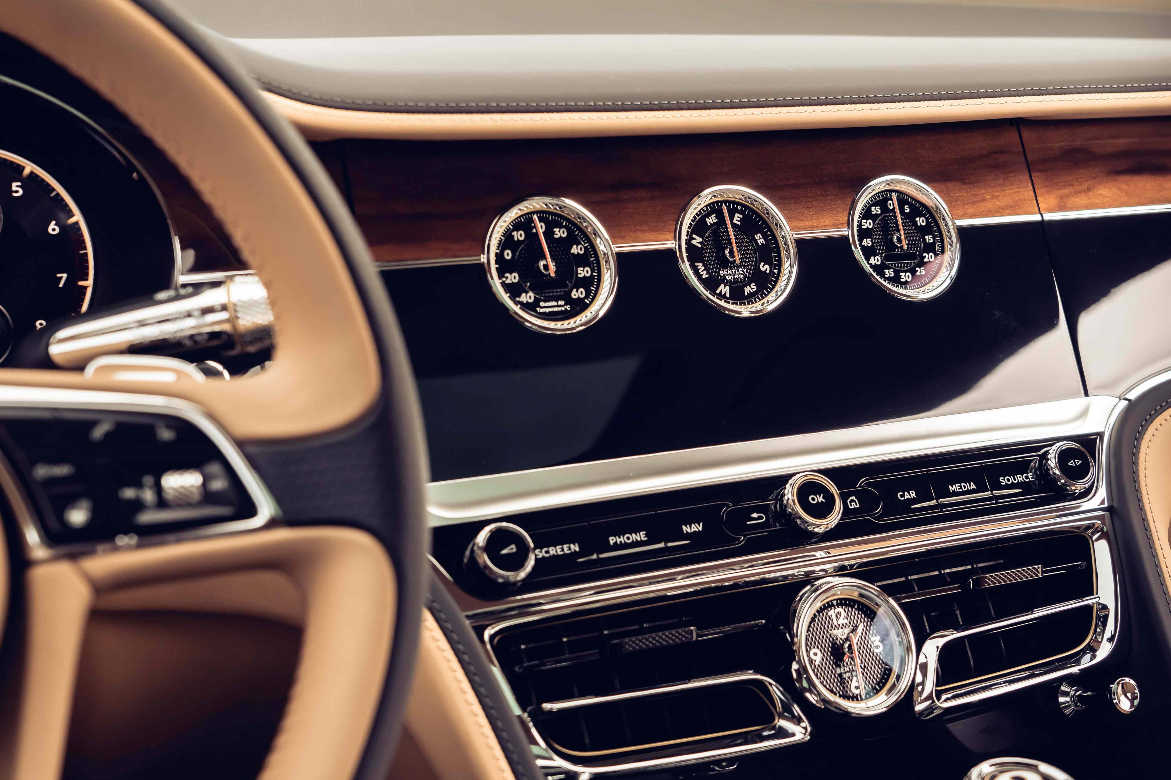 O inédito Bentley Rotating Display é um sucesso junto dos clientes da marca britânica, sendo uma das opções mais populares e a escolha de cerca de 70% dos condutores Bentley. A marca investiu mais de três anos no desenvolvimento do sistema, o qual conta com um total de 153 componentes para dar forma a um ecrã com três faces distintas. A tolerância de alinhamento de cada uma das faces é de sensivelmente 0,3 milímetros. O sistema permite escolher entre um ecrã tátil principal de 12,3” do infoentretenimento e um conjunto de três indicadores analógicos que incluem a temperatura exterior, uma bússola e um cronómetro.