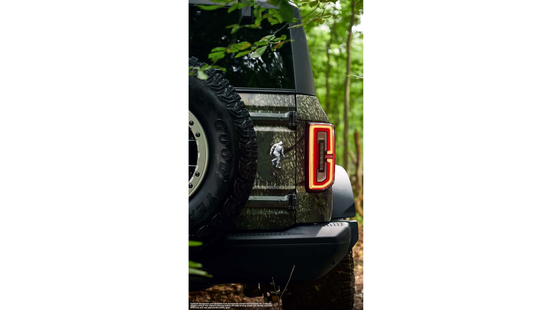 O todo-o-terreno começou por ser um Bronco de duas portas com o pacote Sasquatch, ao qual a Ford acrescentou uma barra de luz no tejadilho, câmaras extra todo-o-terreno e um revestimento exterior de camuflagem com tema de árvores.