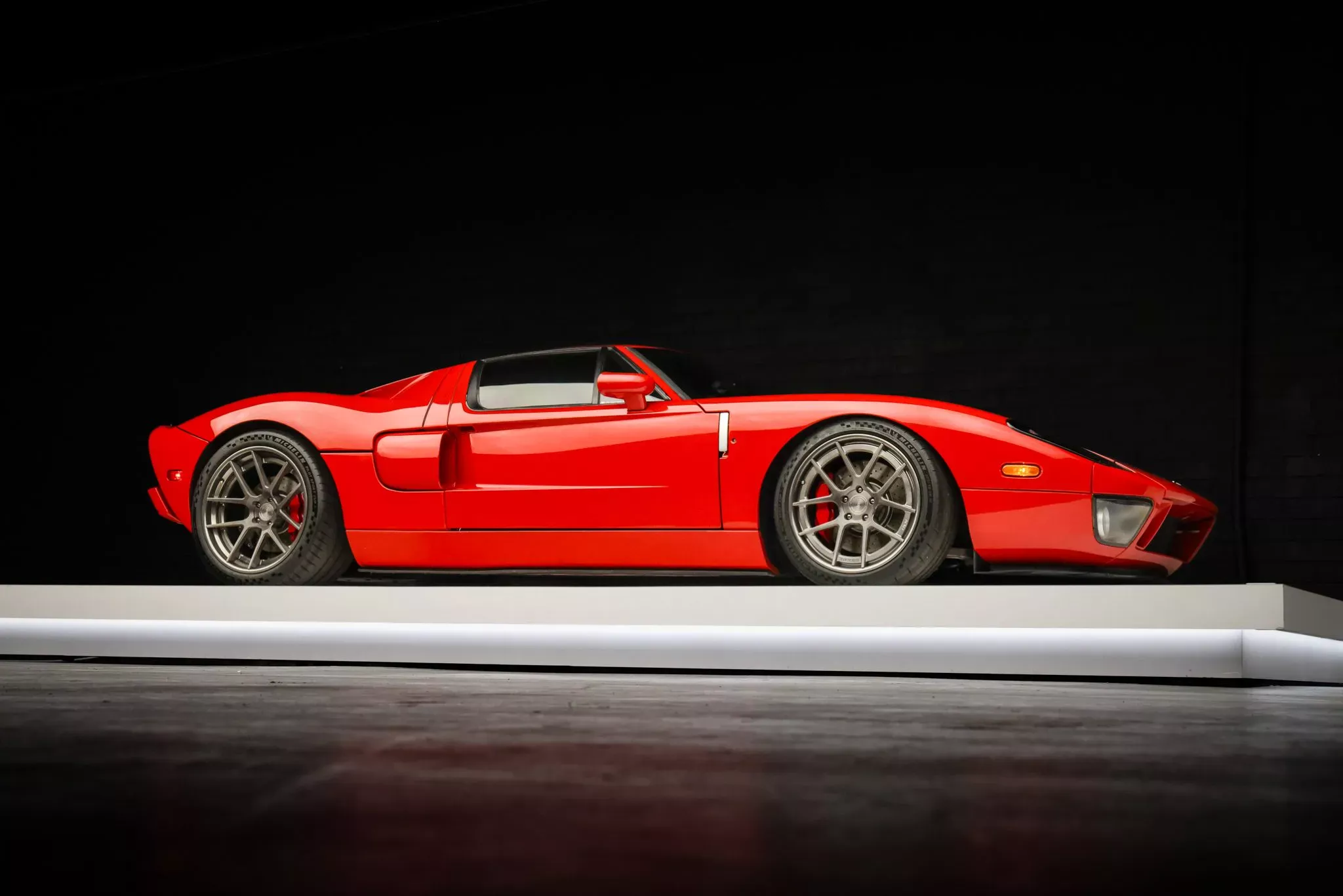 É um dos poucos Ford GT desta série pintado nesta cor especial Mark IV Red, mas sem as listas brancas habituais no modelo e com algumas alterações à configuração de fábrica, como as jantes de 19 e 20 polegadas, os amortecedores Penske e até o tuning de motor para o V8 de 5,4 litros, sem que se conheça o valor real de potência e binário.