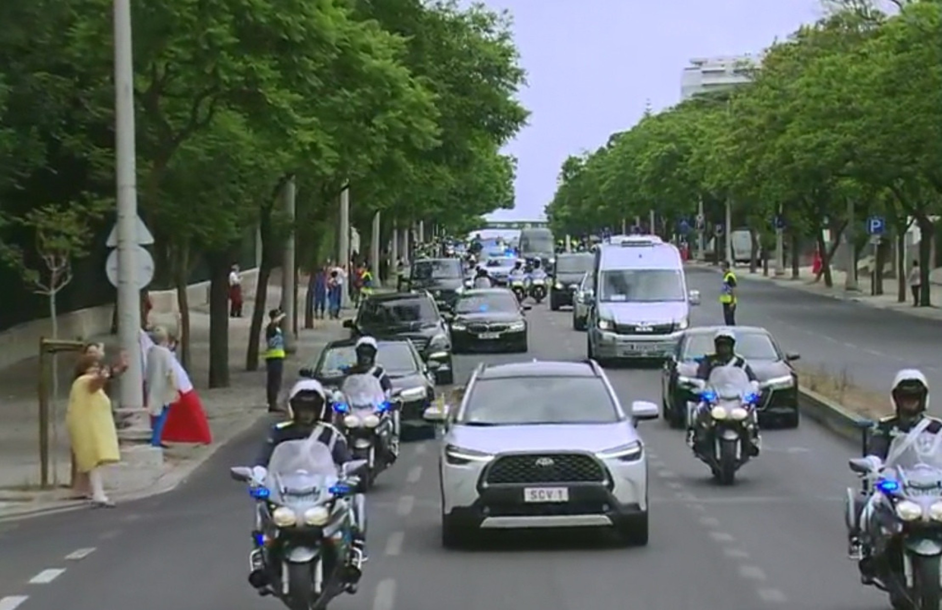 Durante a sua visita a Portugal, o Papa optou por um veículo igualmente modesto em vez do tradicional papamóvel. A sua primeira deslocação no país foi feita num Toyota Corolla Cross, um SUV híbrido, também branco, com a matrícula SCV 1, que é utilizada em viagens oficiais do Sumo Pontífice.