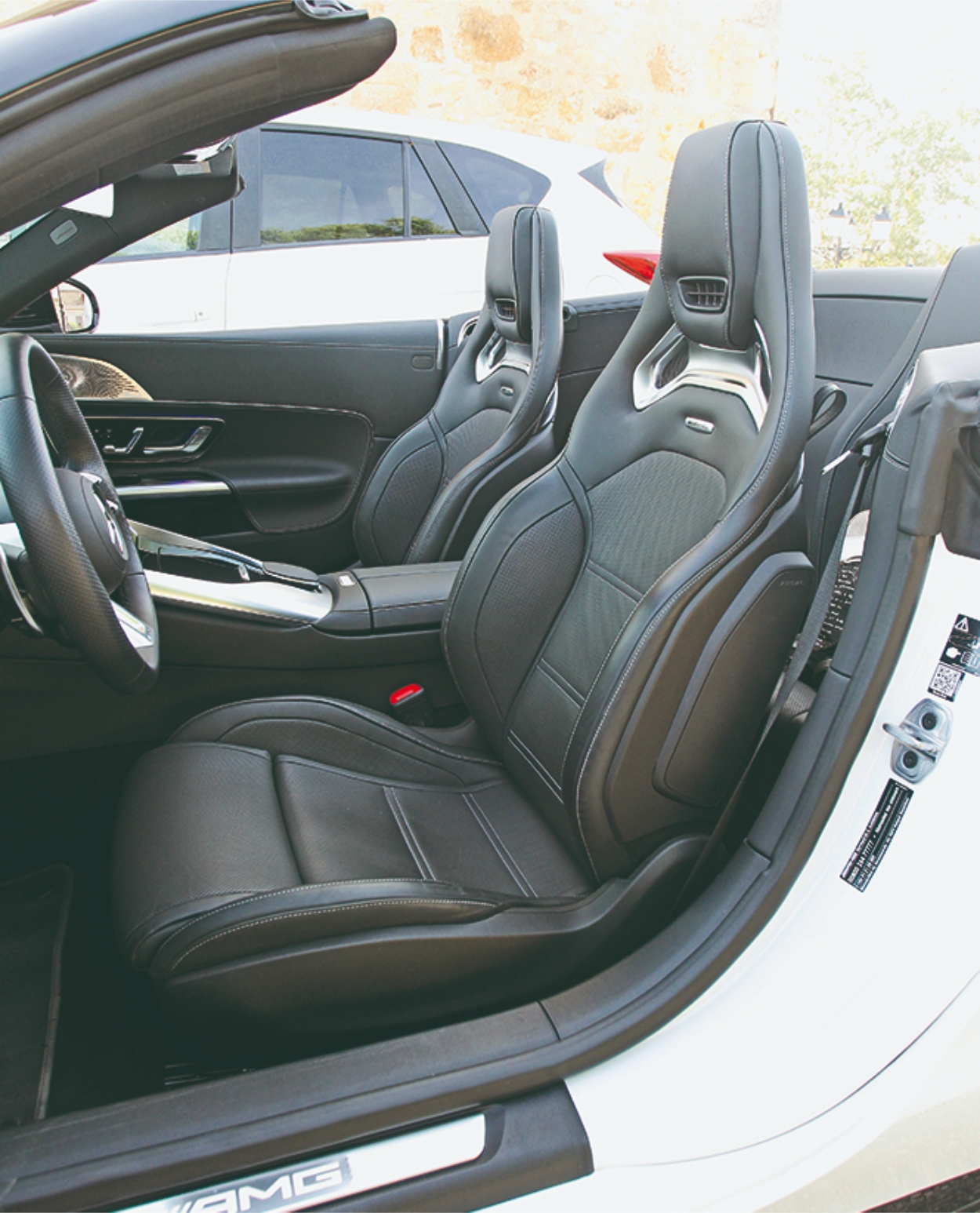 Pode parecer pretensioso, mas este SL 43 é o mais parecido com o seu antecessor de meados do século passado. A chave reside na sua mecânica, de apenas quatro cilindros, depois de várias gerações em que os seis, oito e até doze pistões preencheram o espaço debaixo do capô (atenção, o famoso “asas de gaivota” utilizava um quatro cilindros). Este motor, o mais acessível da gama SL, provém diretamente do Classe A na versão 45 AMG, um 2.0 turbo que, para a ocasião, surge acoplado a um sistema microhíbrido, proporcionando um total de 421 CV de potência e 500 Nm de binário máximo. Números nada desprezíveis para um carro que se autodenomina roadster.
