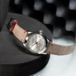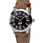 | Detalhes | Ponteiro dos segundos e marcador “60” em vermelho; índices luminescentes. |