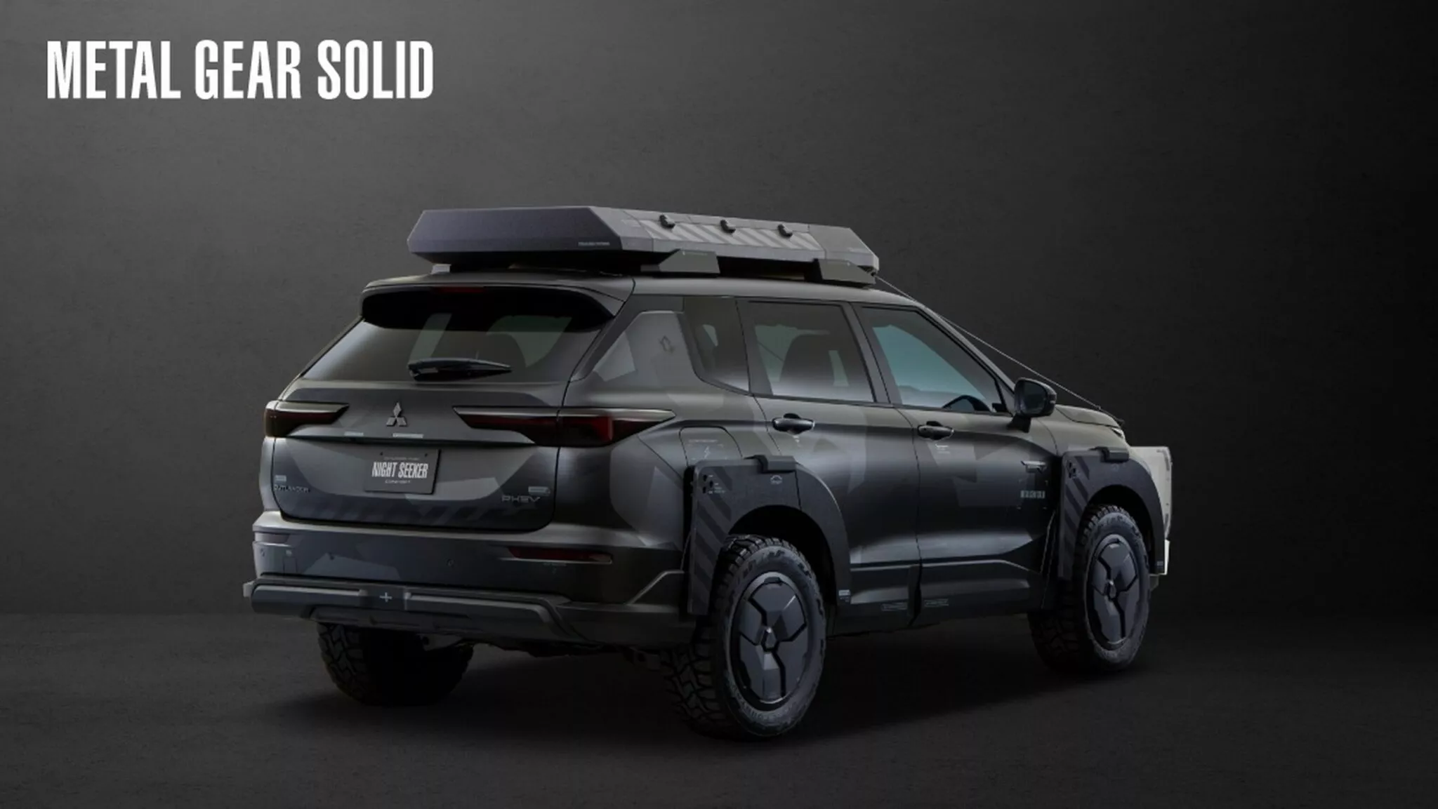 O perfil do SUV apresenta extensões de para-choques afiadas, com um acabamento mate a condizer com a barra de tejadilho personalizada. Os toques finais são a pintura escura com gráficos de Metal Gear Solid e as tampas das rodas com um aspeto blindado.