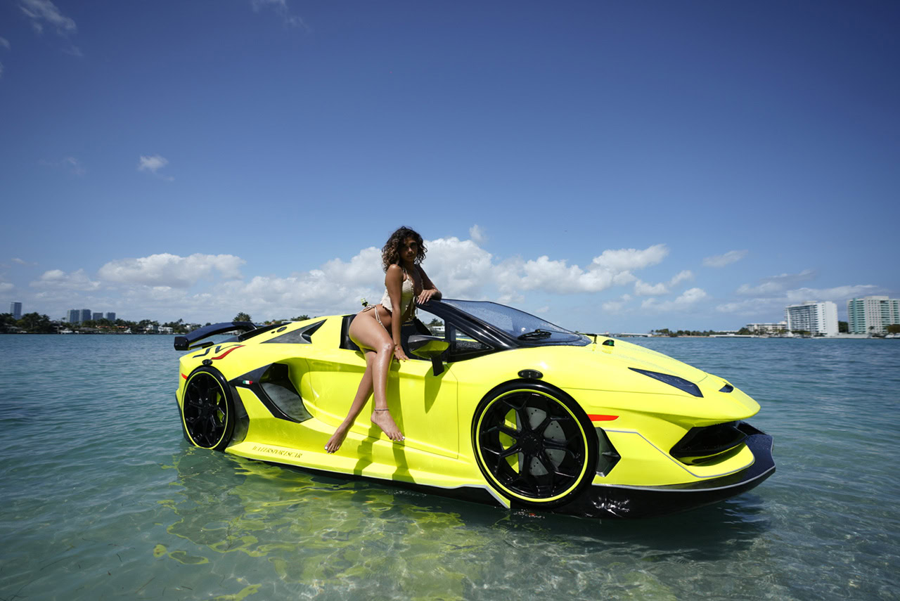 Imagine chegar à praia ao volante do superdesportivo dos seus sonhos, mas pela parte do mar…! Isso mesmo acelerar o Lamborghini, o Ferrari ou o Corvette dentro de água até terra firme. É esta a proposta original da Watersports Car, empresa americana que está a tentar reinventar-se no negócio do transporte aquático, oferecendo réplicas dos automóveis mais icónicos e desejados do mundo para guiar nas ondas.