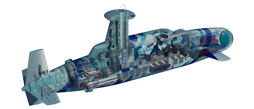 O submarino tem 20 metros de comprimento e foi projetado para imitar o luxo dos jatos particulares, permitindo que os ricos viagem debaixo de água.