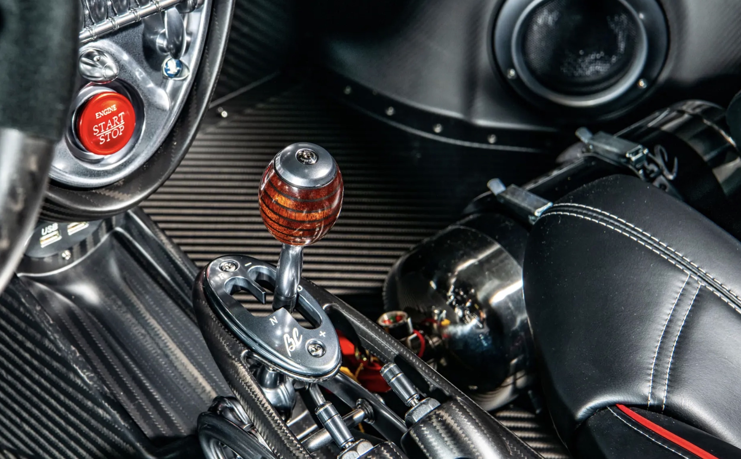 Os detalhes da personalização são meticulosos. O interior combina pele Malevic negra com realces a vermelho e fibra de carbono. O número 40, que proclama o seu lugar único na linha de produção, está bordado nos apoios de cabeça e inscrito no tejadilho de fibra de carbono removível.