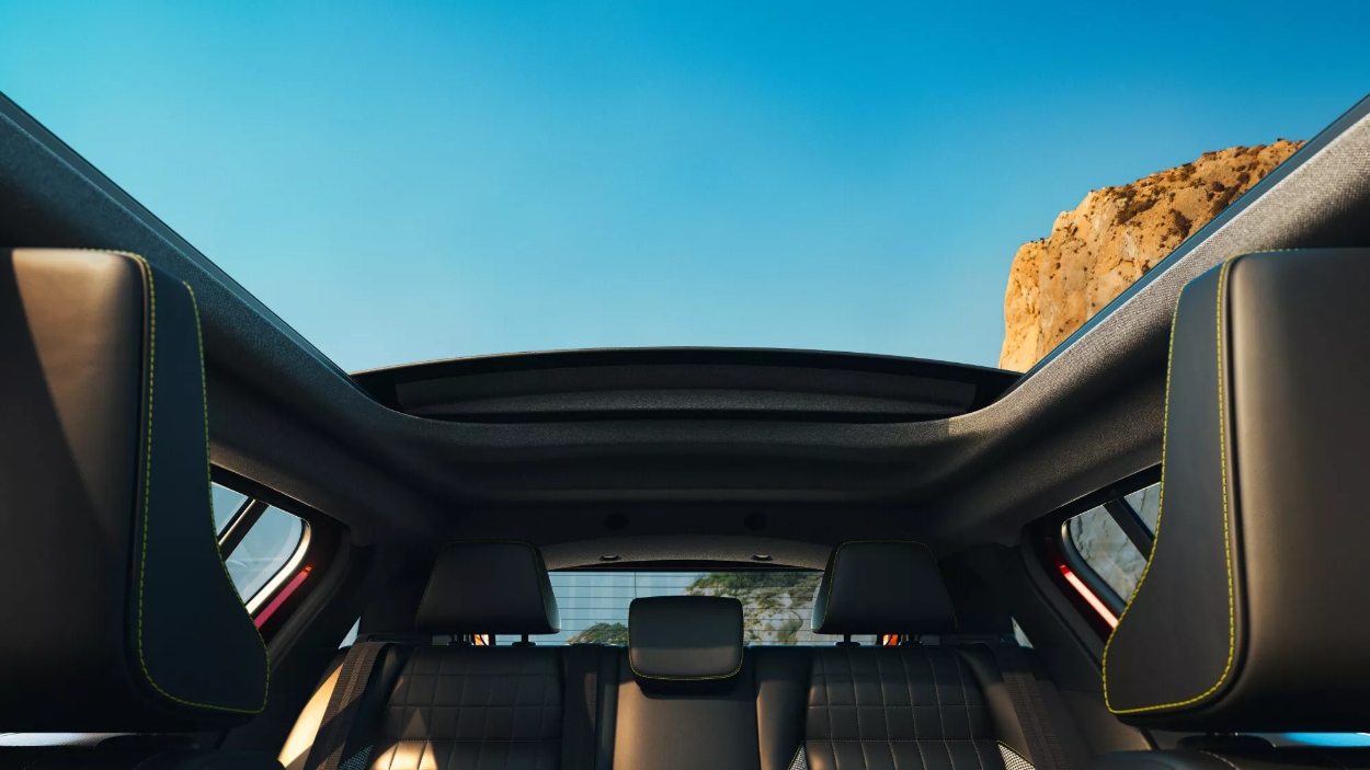 O objetivo foi garantir uma abertura ampla e desobstruída para todos os ocupantes. O teto atinge 92 cm de comprimento e 80 cm de largura, permitindo que até os passageiros traseiros desfrutem da vista. A abertura pode ser ajustada em várias posições através de um botão na chave ou junto ao espelho interior.