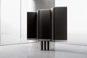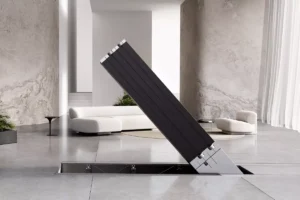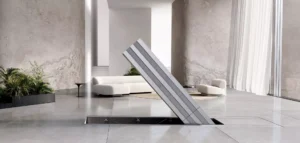 Longe de ser um televisor convencional. Os modelos, designados N1 (para interior) e M1 (para exterior, repousam horizontalmente quando não estão a ser utilizados, assemelhando-se a um móvel futurista.