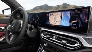 Mas a novidade maior do atualizado Série 3 encontra-se no interior, agora marcado pelo BMW Curved Display, um único monitor curvilíneo que agora domina o tablier, semelhante ao já presente no i4. Este painel totalmente digital agrega o monitor de 12,3” da instrumentação com o módulo tátil de 14,9” da versão 8.0 do sistema operativo e do iDrive. Não obstante a eliminação de vários botões físicos, mantém-se o comando rotativo do iDrive na consola entre os bancos dianteiros.