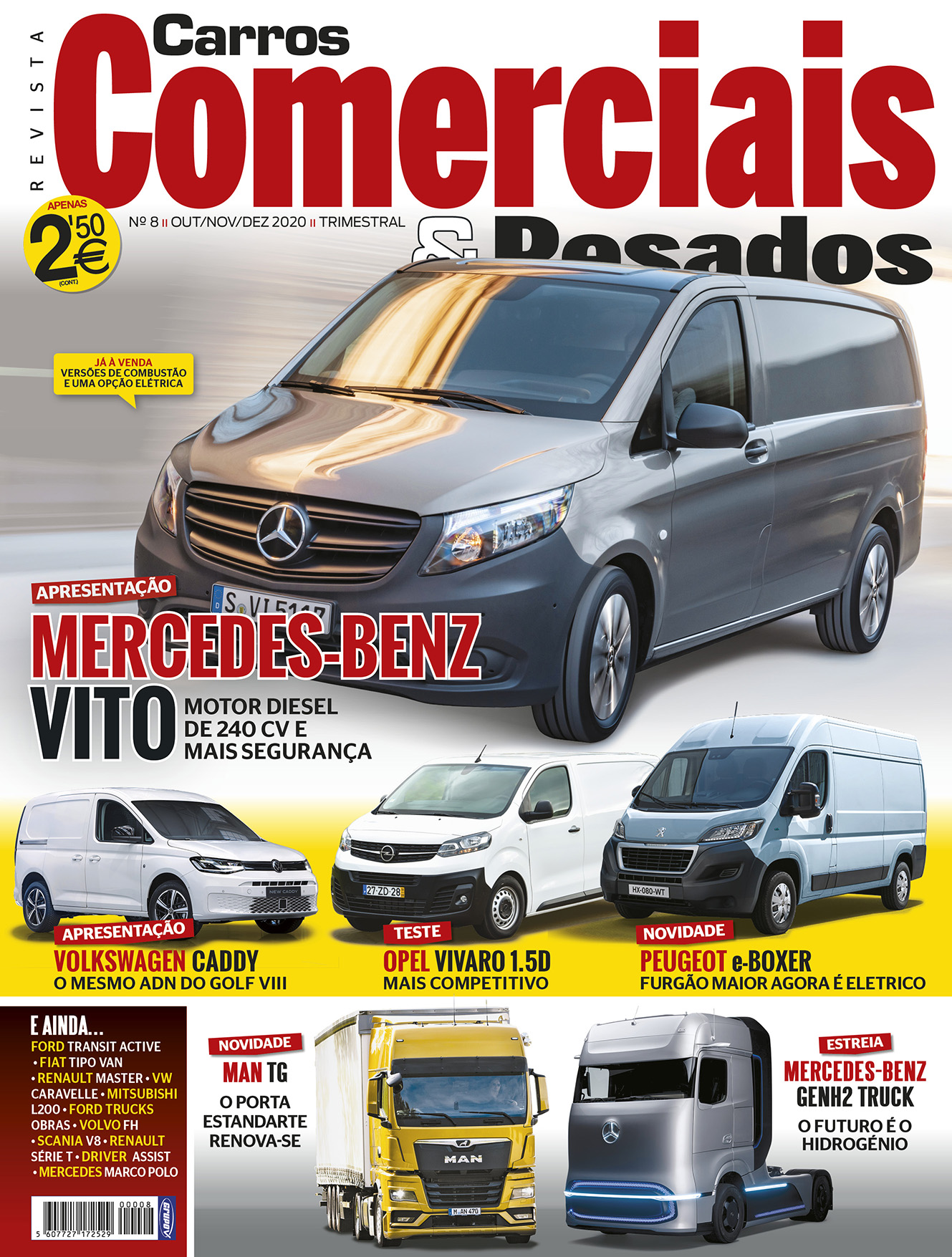 Assim, a começar pela capa, pode ficar a conhecer a renovada geração do Mercedes-Benz Vito, do Volkswagen Caddy, do Peugeot Boxer elétricos, entre outros. Temos ainda novidades da Ford e da Opel.