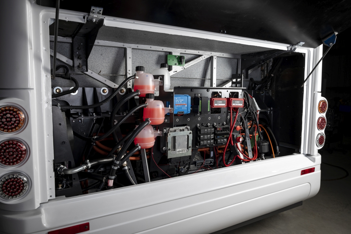 Paralelamente, o motor Diesel e todos os sistemas associados são removidos. O cofre de motor é totalmente digitalizado em CAD para criar uma unidade de propulsão elétrica à medida numa plataforma que se adapta perfeitamente ao compartimento. Uma vez criados os protótipos, estes são submetidos a um rigoroso programa de testes e validação antes da certificação.