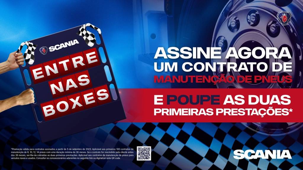 Para manter os veículos em funcionamento e evitar paragens desnecessárias, a Scania lançou esta nova campanha com condições atrativas: ao assinar este contrato de manutenção de pneus, as duas primeiras prestações são gratuitas para o cliente. Com início a 5 de setembro, esta campanha é válida para os primeiros 100 contratos e inclui marcas de pneus de primeira qualidade, como a Michelin.