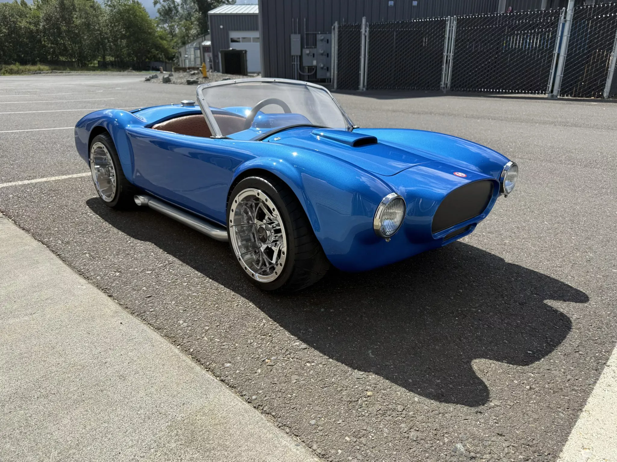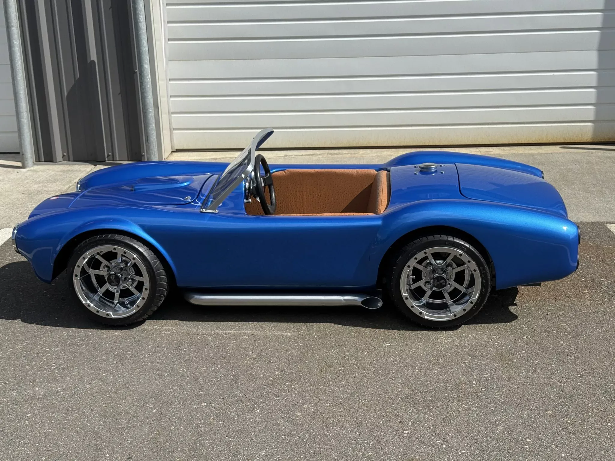 O mini Cobra partiu de uma carroçaria degradada adquirida em 2023. O restauro incluiu reparação estrutural, pintura em azul-metálico e instalação de componentes mecânicos de alto desempenho.