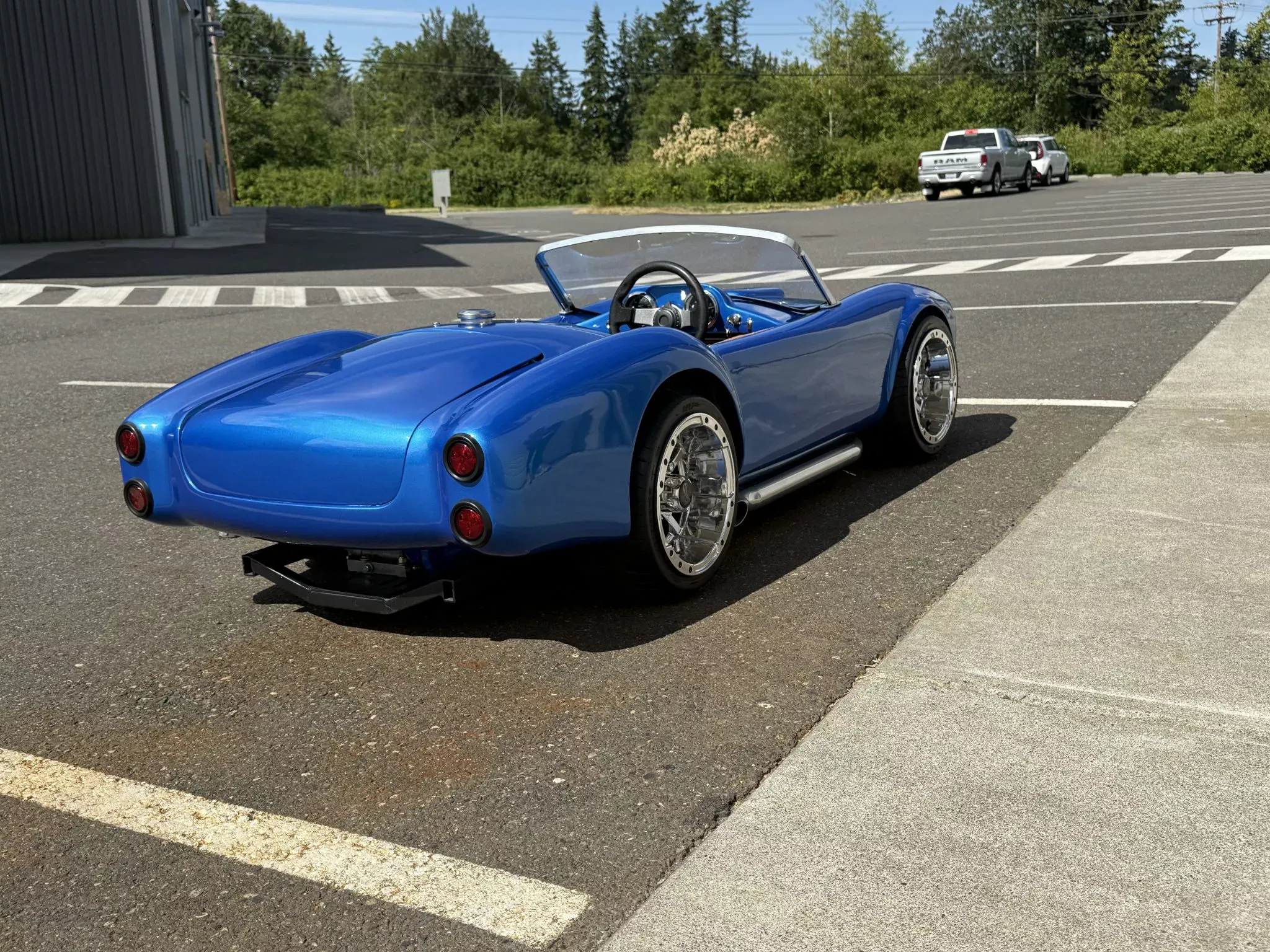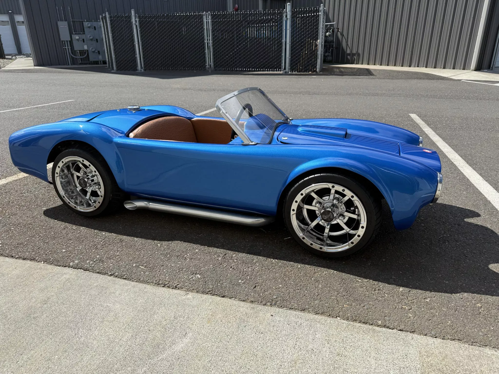 O mini Cobra partiu de uma carroçaria degradada adquirida em 2023. O restauro incluiu reparação estrutural, pintura em azul-metálico e instalação de componentes mecânicos de alto desempenho.