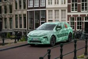 Partilha grande parte da sua tecnologia com o Enyaq e o início das vendas está previsto para o final deste ano. As fotos recém-lançadas do modelo mostram-no com uma camuflagem verde e preta, e parece familiar a um modelo Skoda. A extremidade dianteira inclui uma pequena grelha inferior, enquanto o logótipo Skoda se encontra no avental dianteiro. A camuflagem faz um bom trabalho ao esconder alguns dos detalhes mais finos, mas podemos ver que o painel de instrumentos é certamente bastante angular e inclui um par de faróis afilados.