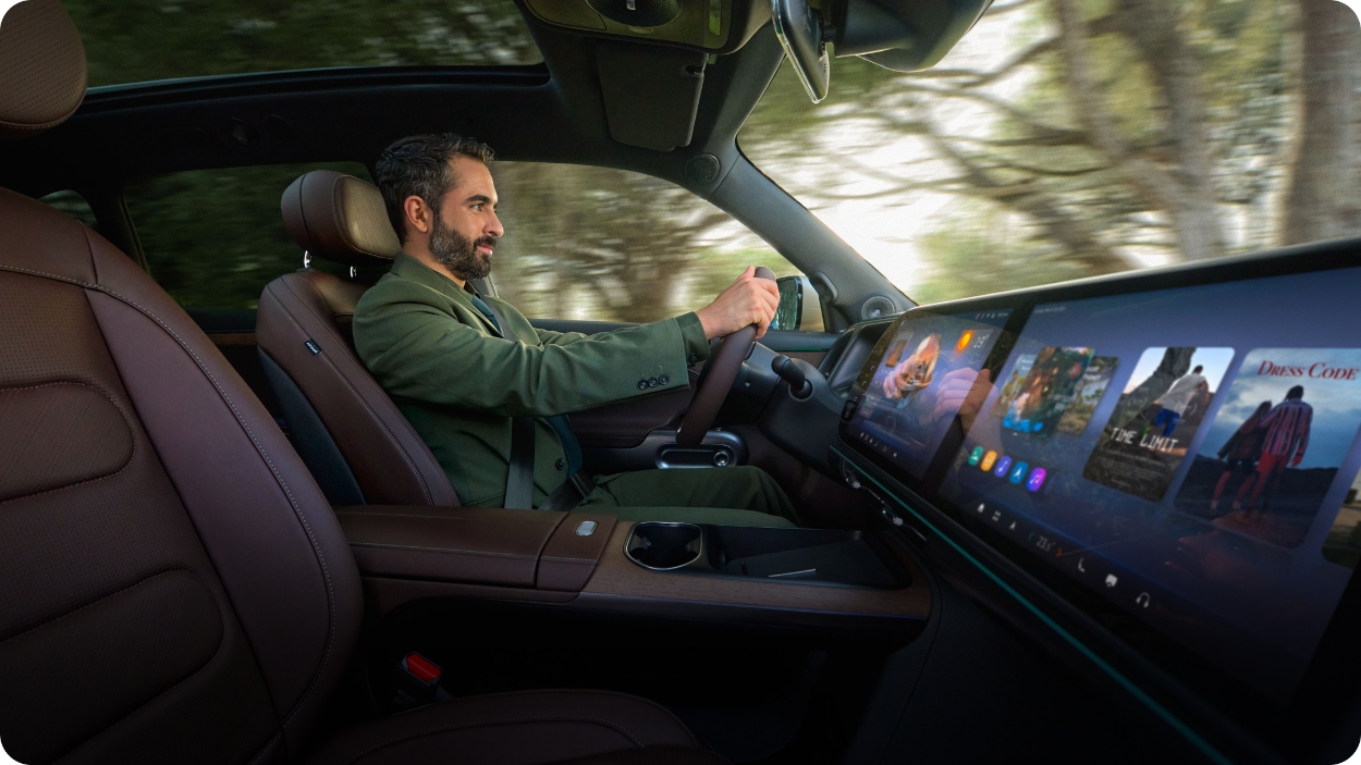 Através da porta USB‑C e de um conversor HDMI, é possível projetar conteúdos de: Laptops; Tablets ou Smartphones. O utilizador pode alternar entre o ecrã central e o ecrã do passageiro, ideal para: rever apresentações, participar em videochamadas, trabalhar documentos ou ver conteúdos em streaming. Durante a condução, por razões de segurança, apenas o ecrã do passageiro pode exibir o conteúdo.