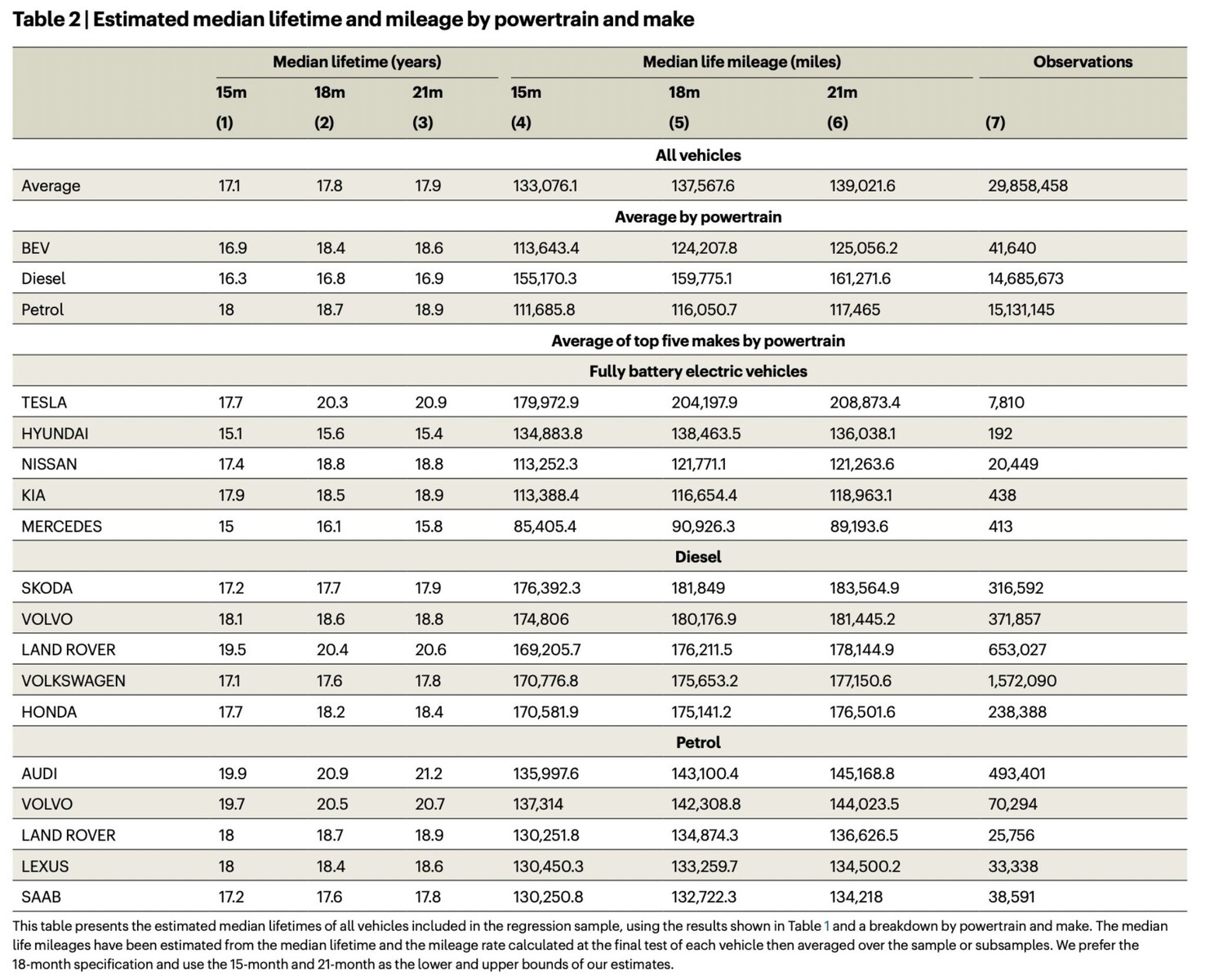 Números são o que são. Veja-se: só aqui na redação da Carros&Motores há dois Diesel com mais de 20 anos, mas o que diz este novo estudo é que a vida útil dos motores a gasóleo é, em média, inferior. E que os veículos elétricos deverão suplantar estes seus congéneres a combustão em matéria de longevidade.