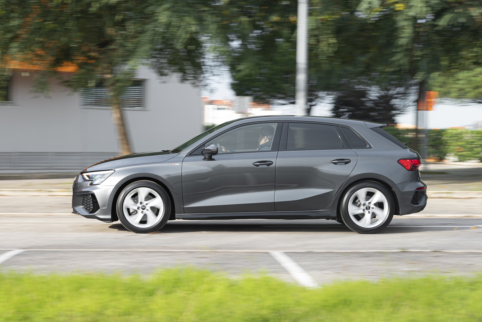 Aspeto bastante positivo deste A3 Sportback é o seu chassis, que exibe enormíssima competência em toadas mais dinâmicas (apesar do eixo de torção atrás), oferecendo confiança e segurança ao condutor nas estradas sinuosas. A isso não é alheio o facto de ter uma altura ao solo rebaixada em 15 mm inerente ao equipamento S line, razão pela qual adota uma postura mais firme, embora não comprometa grandemente o conforto dos ocupantes. Com rolamento de carroçaria muito contido e direção precisa e informativa, este modelo assume-se como uma proposta direcionada para quem faz do prazer de condução um argumento de compra – mesmo que nesta versão de 110 CV ‘sobre’, claramente, chassis.