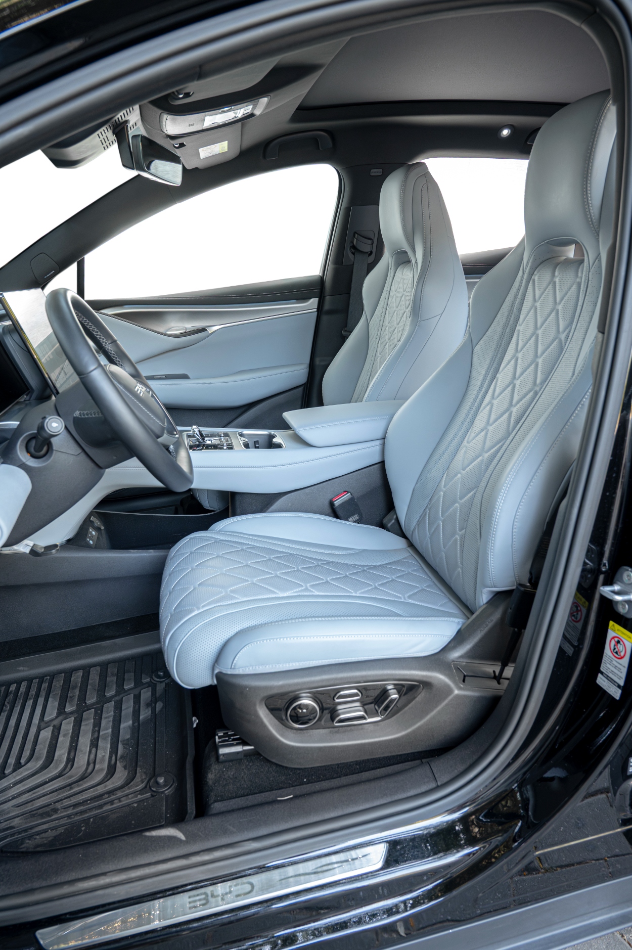 No outro lado da balança, os seus 530 CV e 690 Nm de binário máximo são marcantes, como seria de esperar. Tem potência de sobra e despacha os 0 aos 100 km/h em somente 4,5 segundos (dado que curiosamente aparece na traseira do carro), enquanto a velocidade máxima é de 215 km/h. A aceleração é muito intensa, mas a experiência de condução melhoraria com um pouco mais de precisão ao pisar o pedal: quando se acelera com veemência e se solta revela um pequeno atraso até começar a perder velocidade. E isso acontece nos dois modos de travagem regenerativa, selecionáveis através de um botão na consola ou no ecrã, que também inclui um comando para escolher entre quatro programas de condução: Snow, Eco, Normal e Sport. E há mais parâmetros personalizáveis, como o assistente de travagem (traduzido pelo sistema como Conforto ou Desporto) e outros dois para a dureza da direção, ambos desde o menu do sistema de infoentretenimento.