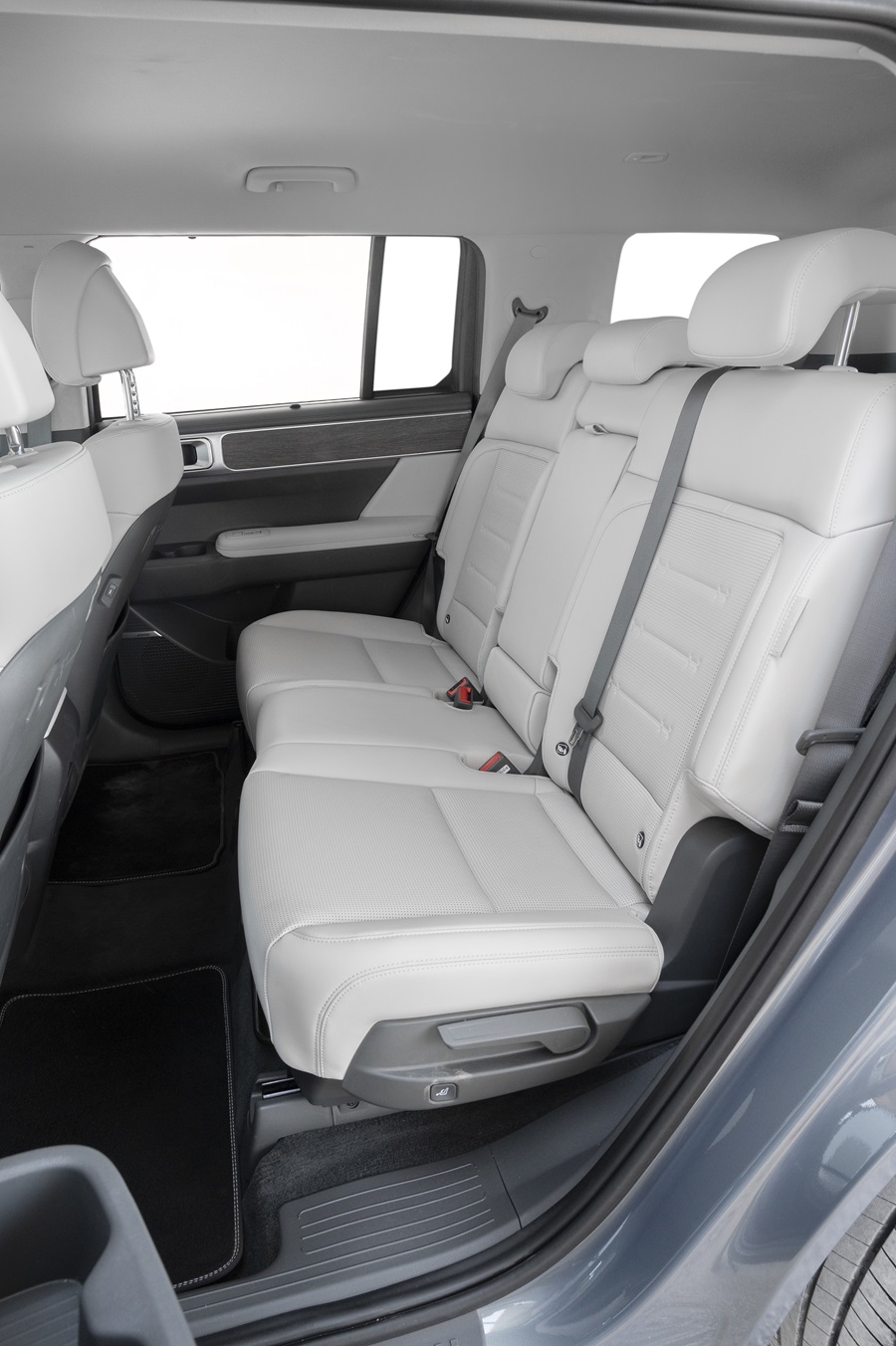 Mantendo a configuração de sete lugares, sendo a terceira fila composta por dois bancos rebatíveis sob o piso da bagageira, o novo Santa Fé cresce 4,5 cm em comprimento (total de 4,83 m), 6 cm em largura e 5 cm na distância entre eixos. Só a altura não muda. Com isto cresceu também o espaço e a qualidade de vida a bordo, sobretudo nas duas filas mais recuadas: na segunda (que pode deslocar-se sobre carris para frente ou para trás) há 15 mm adicionais para as pernas, enquanto a terceira fila adicionou 20 mm em comprimento (e o assento está em posição 30 mm mais alta). Estes dois últimos lugares (aos quais se pode chegar com facilidade porque a segunda fila avança com um único toque), convencem nas cotas da altura, mas continuam a ser apertados para as pernas, o que significa que se recomendam para pequenos ocupantes.
