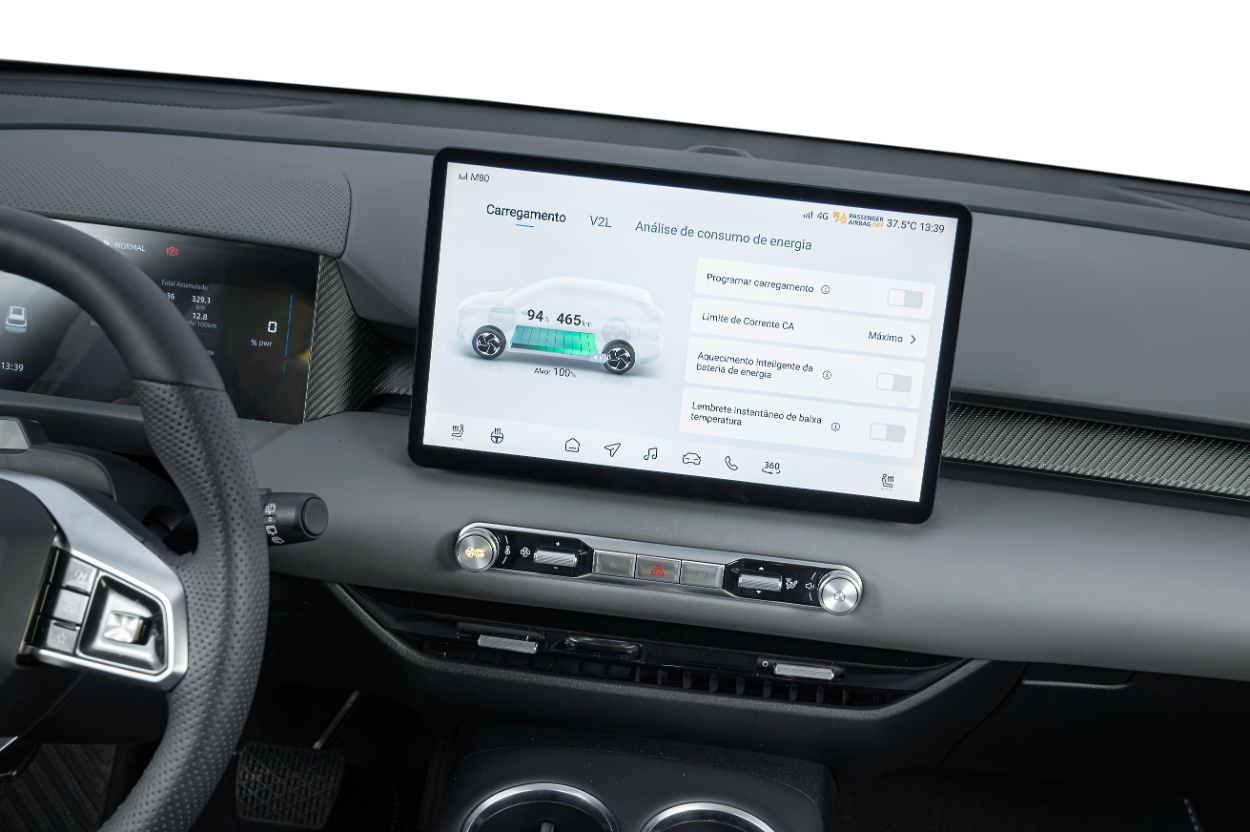 A tecnologia também é virtude do S5 EV, dispondo de painel de instrumentos digital de 10,25”, bastante completo, mas com grafismo pouco personalizável, e ecrã central tátil de 12,8”, este último de ótima leitura e com módulo de infoentretenimento caracterizado por ícones de atalho e por boa rapidez de resposta. O sistema garante navegação e conectividade sem fios a Android Auto e Apple CarPlay.