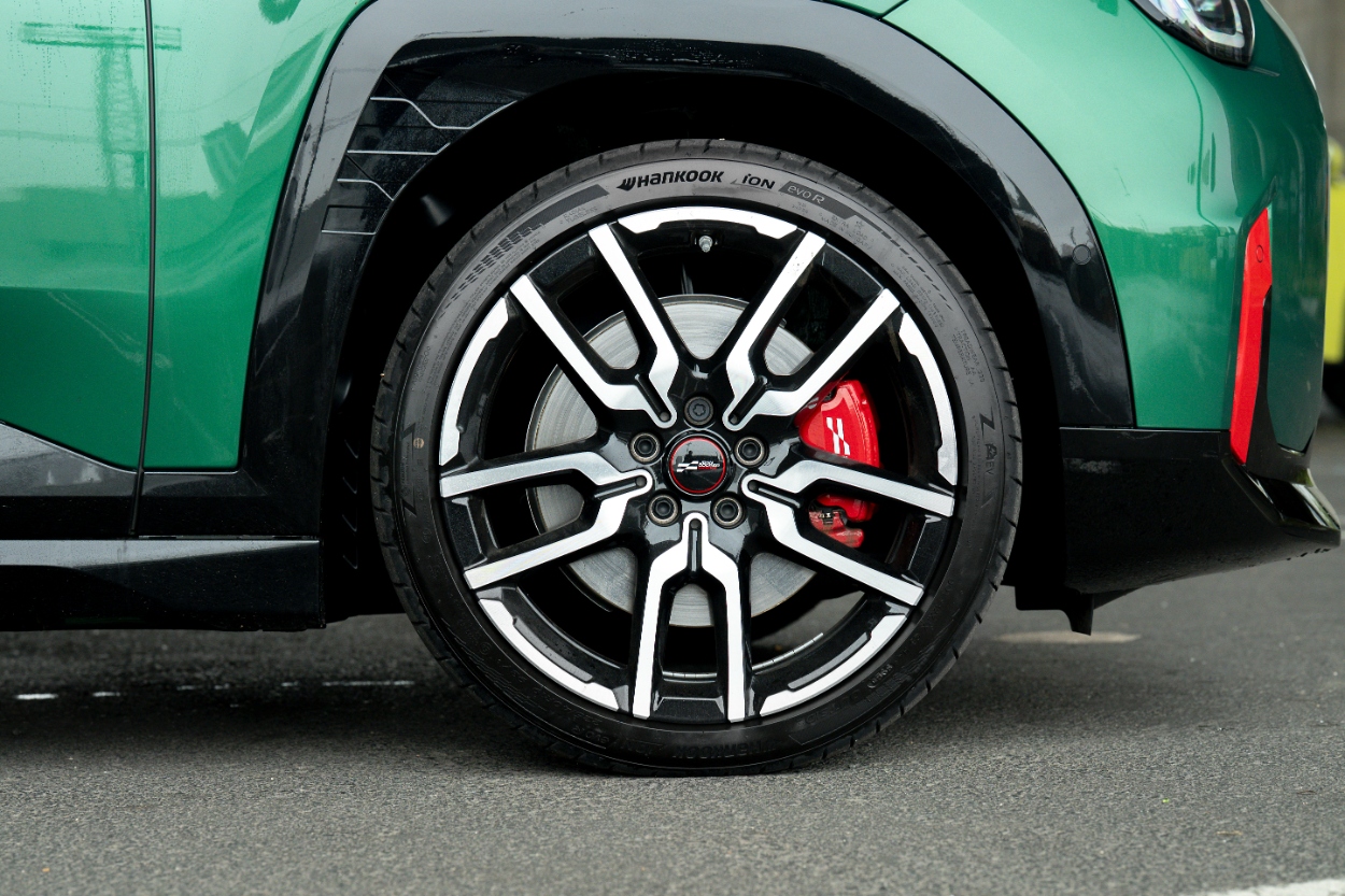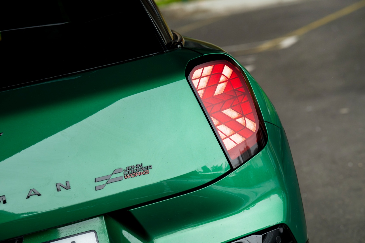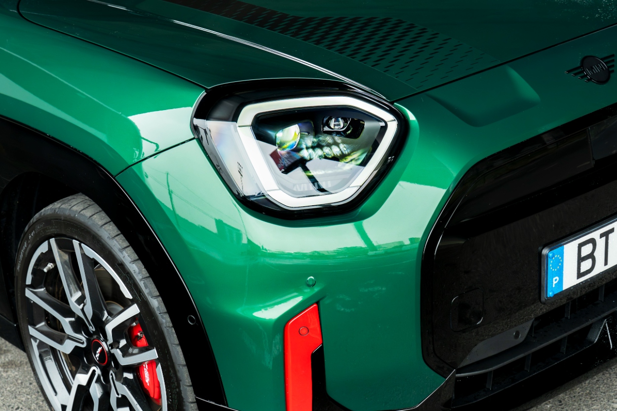 Sublinhe-se, no caso da “nossa” unidade, a cor verde ‘British Racing Green IV’ da carroçaria, o tejadilho em preto, os emblemas especiais na carroçaria (por exemplo, na grelha dianteira) e as jantes de 19” com pneus desportivos como outros atributos que lhe conferem aspeto mais imponente num modelo que é facilmente identificável como um MINI.