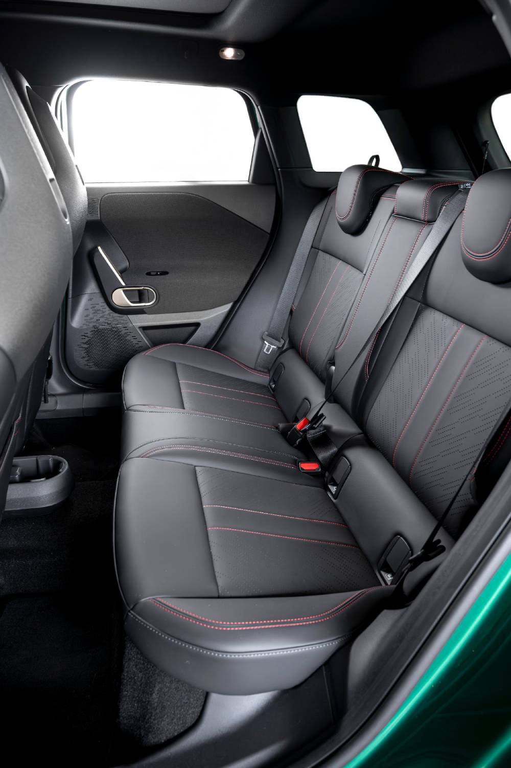 Minimalista, o interior combina o lado nostálgico presente em detalhes como os interruptores para a ‘ignição’ (termo figurado, entenda-se) com a virtude moderna do ecrã central tátil de 9,4” (240 mm de diâmetro), cujo formato circular também remeta para o Mini original. Os retoques desportivos são em grande número, a começar pelos revestimentos em tecido no tablier, com apontamentos gráficos que se transformam no quadriculado da bandeira de xadrez, passando pelo volante desportivo em pele Vescin perfurada com botão “Boost” e terminando nos bancos desportivos aquecidos e de ajuste elétrico em misto de pele artificial Vescin e tecido com excelente suporte do corpo.