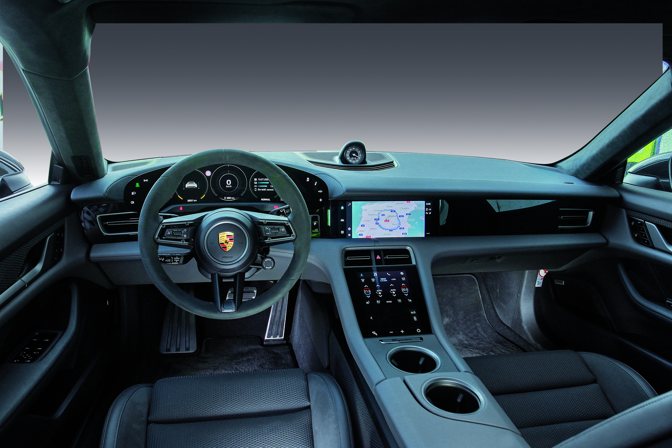 A constatação de uma nova era prossegue no habitáculo, totalmente orientado para a digitalização, pautando-se por diferentes ecrãs: a instrumentação tem por base um ecrã curvo configurável e bastante versátil, havendo ao centro um ecrã tátil de 10,9” através do qual se conseguem comandar todas as funcionalidades do veículo, desde o sistema áudio aos ajustes dos sistemas de condução e de carregamento, passando ainda pela navegação. Adicionalmente, o Taycan permite comandos vocais através da frase ‘Ei Porsche’. A conectividade aos smartphones é abrangente, podendo ainda dispor de aplicação para controlo remoto do estado do veículo.