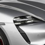É pelo design que o Taycan começa por ganhar o seu espaço – além do encanto magnético do logótipo da Porsche, este elétrico prima pela silhueta aerodinâmica, com frente baixa associada a tejadilho curvo que descende de forma suave rumo à extremidade traseira, disfarçando as duas portas traseiras para se assumir quase como um coupé. Com um coeficiente de arrasto de apenas 0.22 Cx, o 4S denota bem a atenção que recebeu em termos de aerodinâmica – há detalhes como a grelha ativa (que abre ou fecha consoante as necessidades de refrigeração), o fundo quase plano para não interferir com a passagem do ar ou os puxadores das portas retráteis quando em andamento. Atrás, não há tubos de escape, mas um generoso difusor, complementado pelo spoiler retrátil na tampa da bagageira. No seu todo, o Taycan é um tratado visual.