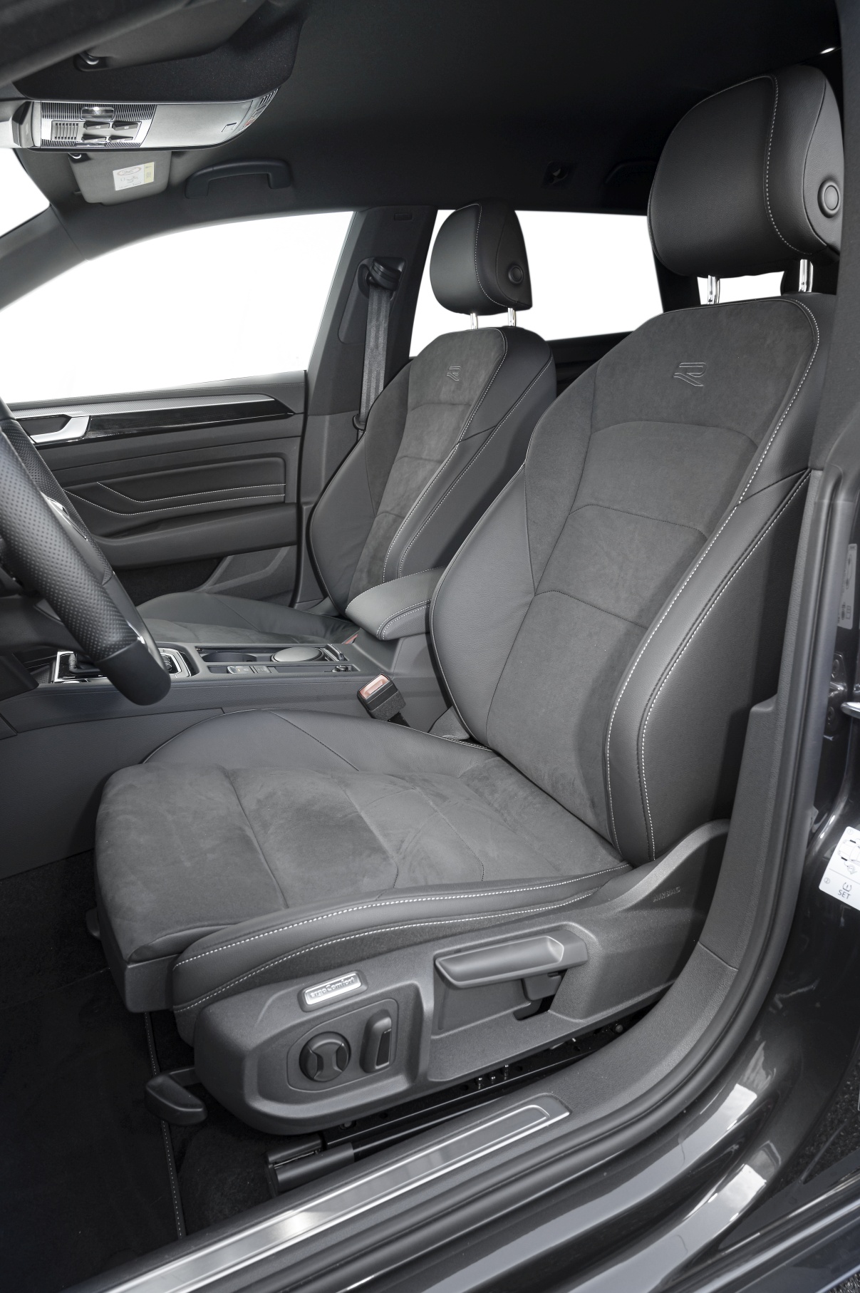 No desenho – incontornável – sobressaem detalhes específicos como a grelha dianteira renovada com lâminas horizontais cromadas que se integram com os faróis equipados com tecnologia LED ou os ‘ombros’ avantajados nas cavas das rodas traseiras, bem evidentes quer olhando pelos retrovisores durante a condução, quer a partir do exterior. Depois, é a traseira que merece destaque pela novidade: os farolins mantêm um formato horizontal semelhante ao da berlina, mas a linha descendente do tejadilho a partir do pilar B, a linha de cintura ascendente e o ligeiro spoiler logo abaixo do óculo posterior dão-lhe uma agressividade única. A linha de equipamento R-Line acentua a sua pose desportiva, com elementos cromados na carroçaria e jantes especiais de 18 polegadas.