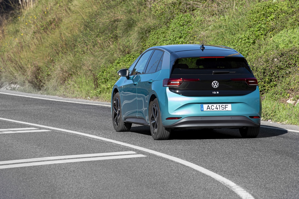 Para locomover o seu novo representante, a VW adotou um motor elétrico de 204 CV e 310 Nm de binário, ainda que a gama seja reforçada, em breve, com mecânicas desde os 126 CV. É um carro rápido em termos absolutos, com destaque para a entrega de potência instantânea habitual nos elétricos. Mas, acima de tudo, é suave. Mesmo no modo de condução mais relaxado, o Eco, move-se bem e tem uma reserva de potência suficiente para a estrada.