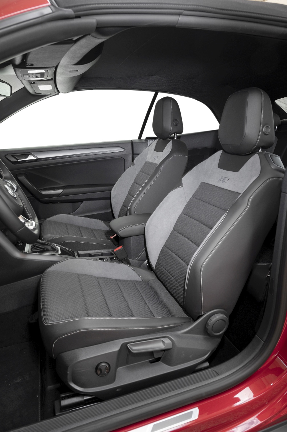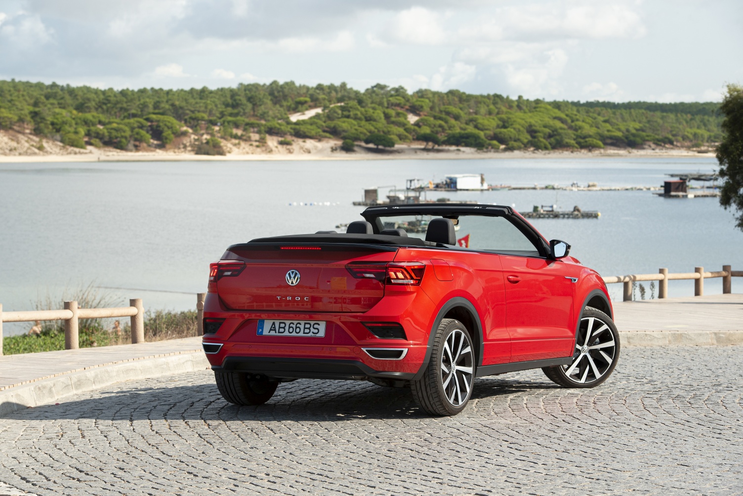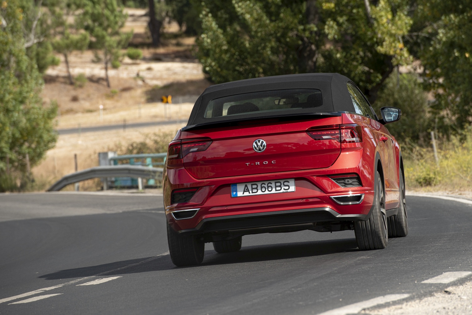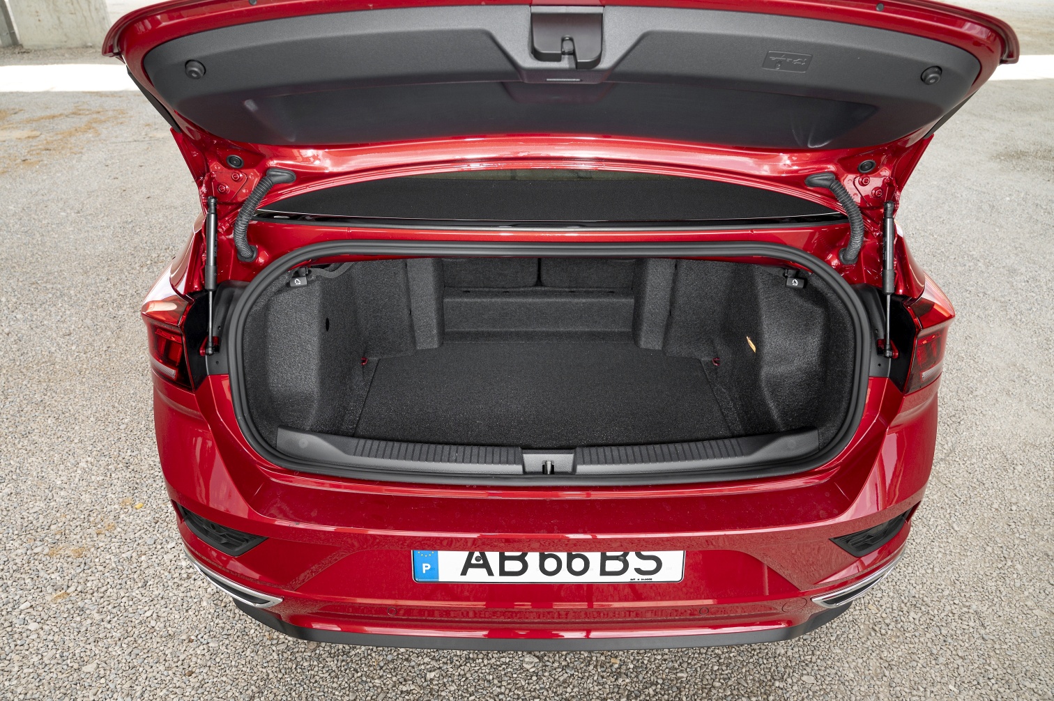 A capota é em lona, tem três camadas de material impermeável e isolante e abre em “Z” quando a meteorologia convida, ficando arrumada por cima da bagageira. Para quem desejar, a marca alemã disponibiliza na lista de opções um corta-vento para montar logo depois dos bancos dianteiros, dispositivo que reduz a turbulência, contudo a sua colocação inutiliza os lugares traseiros, cujos encostos podem ser rebatidos para aumentar a capacidade da bagageira, que nesta carroçaria é de 284 litros (menos 161 litros face ao T-Roc convencional). A mesma bagageira tem ligação com o habitáculo para melhorar a sua funcionalidade (é pena que o plano de carga seja muito elevado).