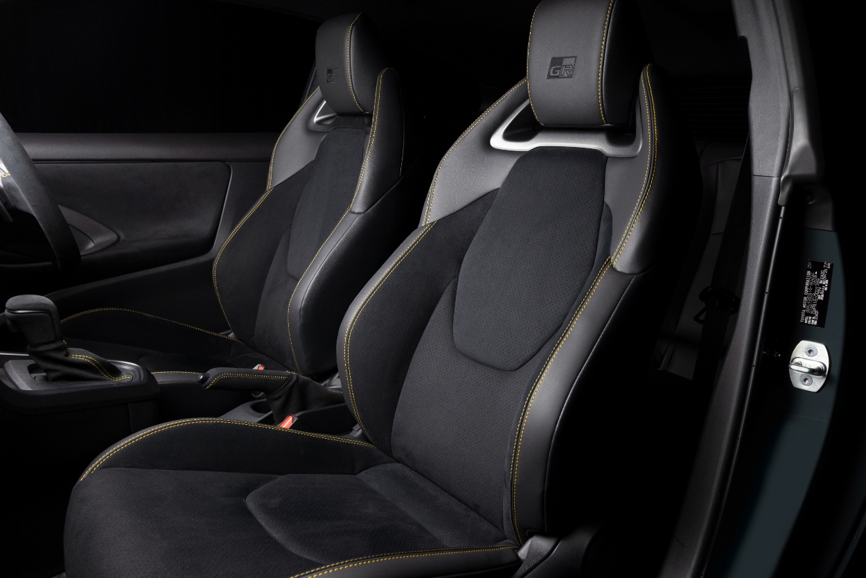No interior, o destaque é o volante que apresenta um design inspirado no automobilismo, revestido em Alcantara com detalhes em amarelo, que conta com patilhas de comando da caixa de velocidades, a que se junta um ecrã do painel de instrumentos personalizado.  Nota ainda para os bancos desportivos exclusivos com costuras em amarelo e um encosto de cabeça com GR bordado.